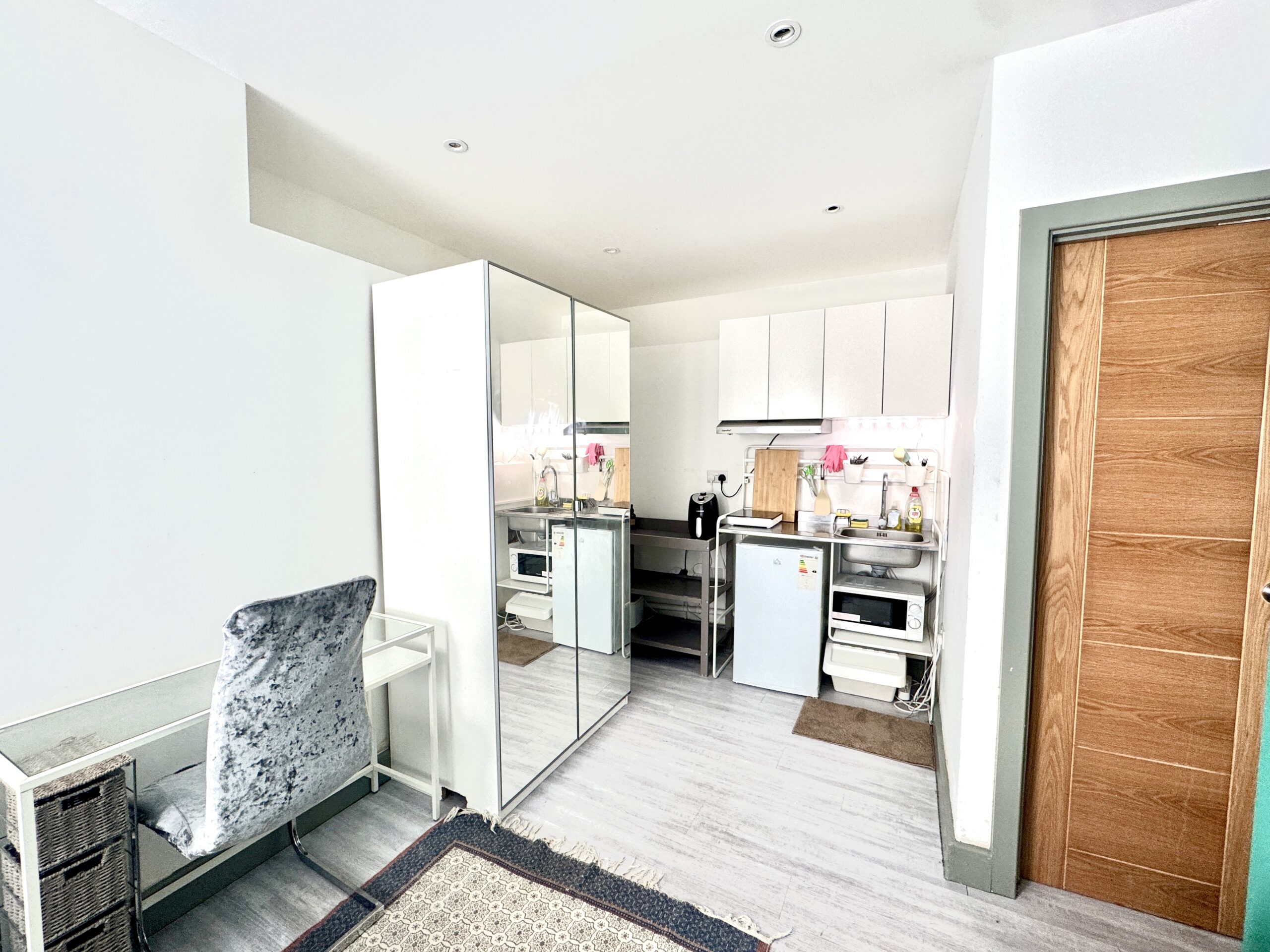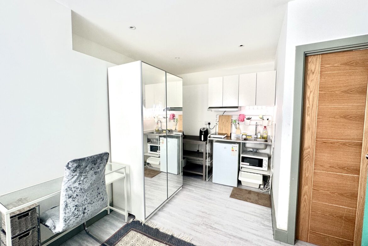 A well-designed studio with a comfortable living and sleeping area, kitchenette, and private bathroom. Finished to a modern standard with quality fittings.